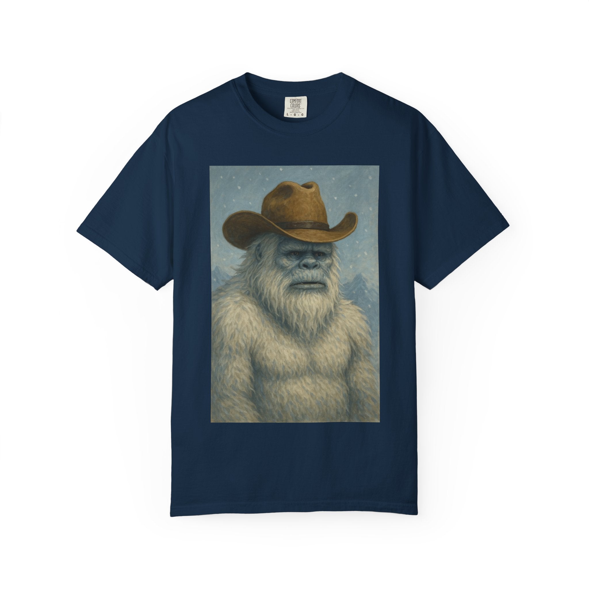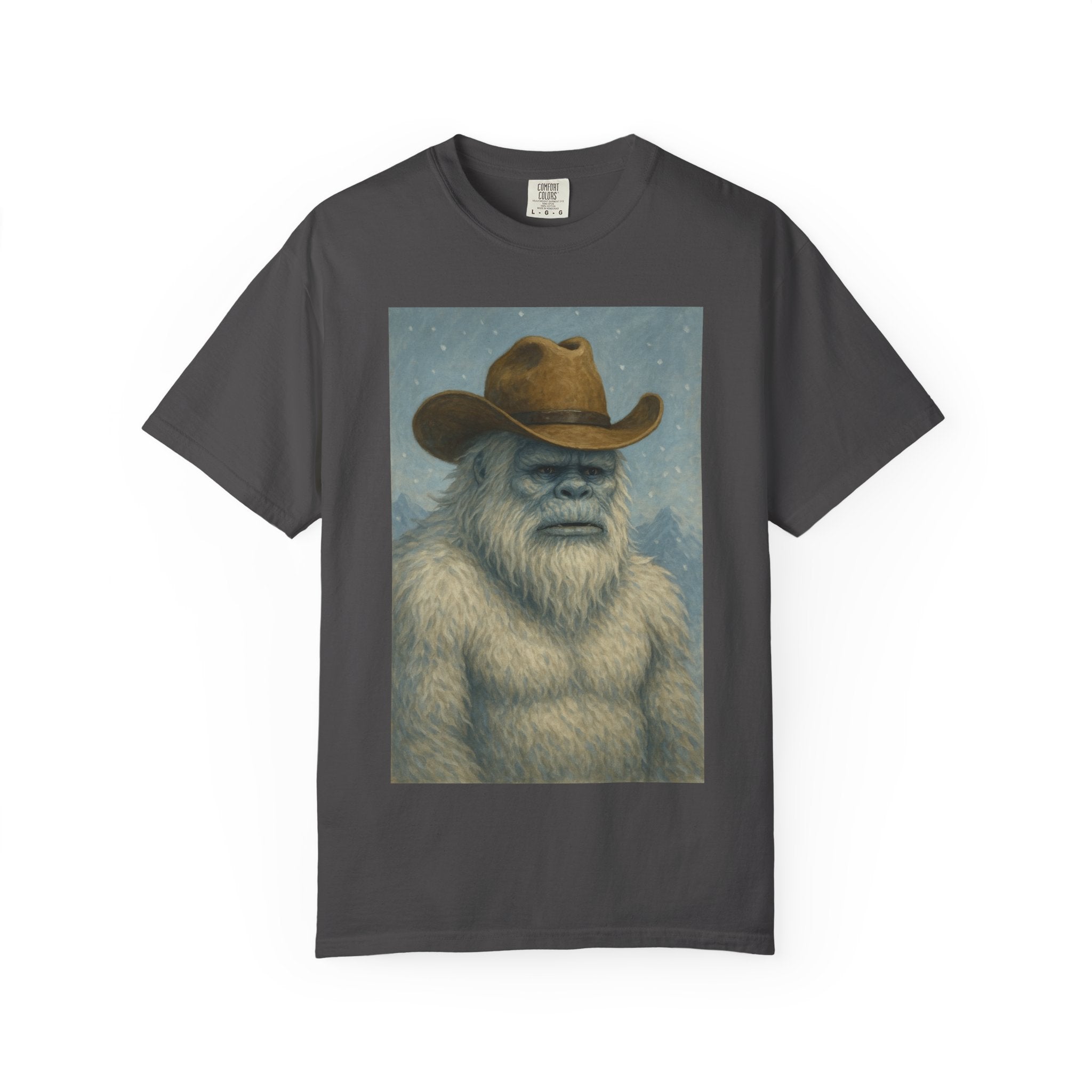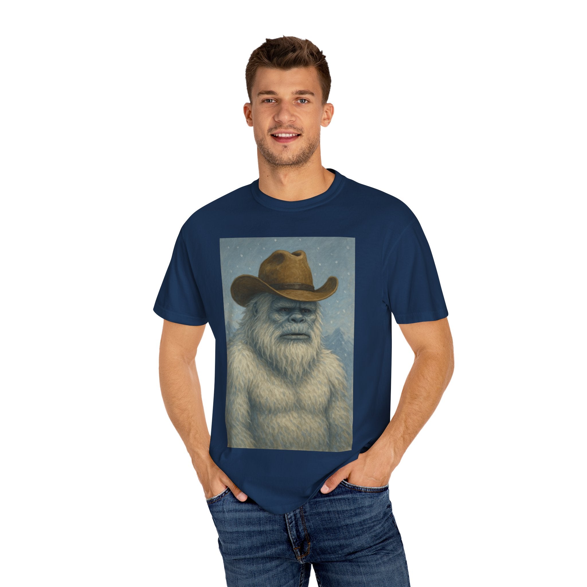 Cowboy Yetti Unisex Garment-Dyed T-Shirt, Funny Tees, Casual Wear, Gifts for Men, Unique Graphic Tee, Outdoor Adventure Shirt